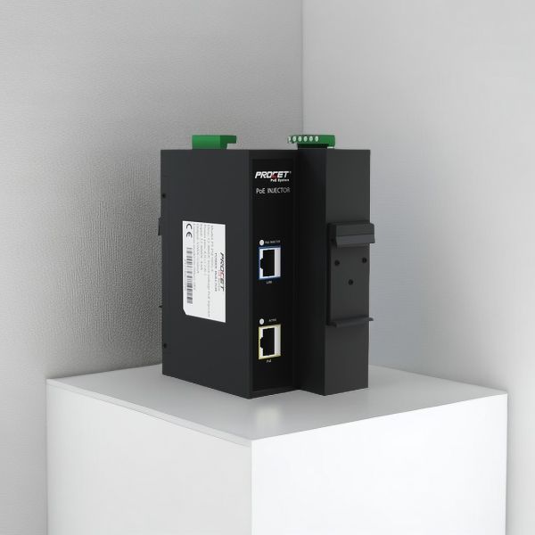 PROCET Industrial Din-rail AT PoE injector with IEEE802.3at standard